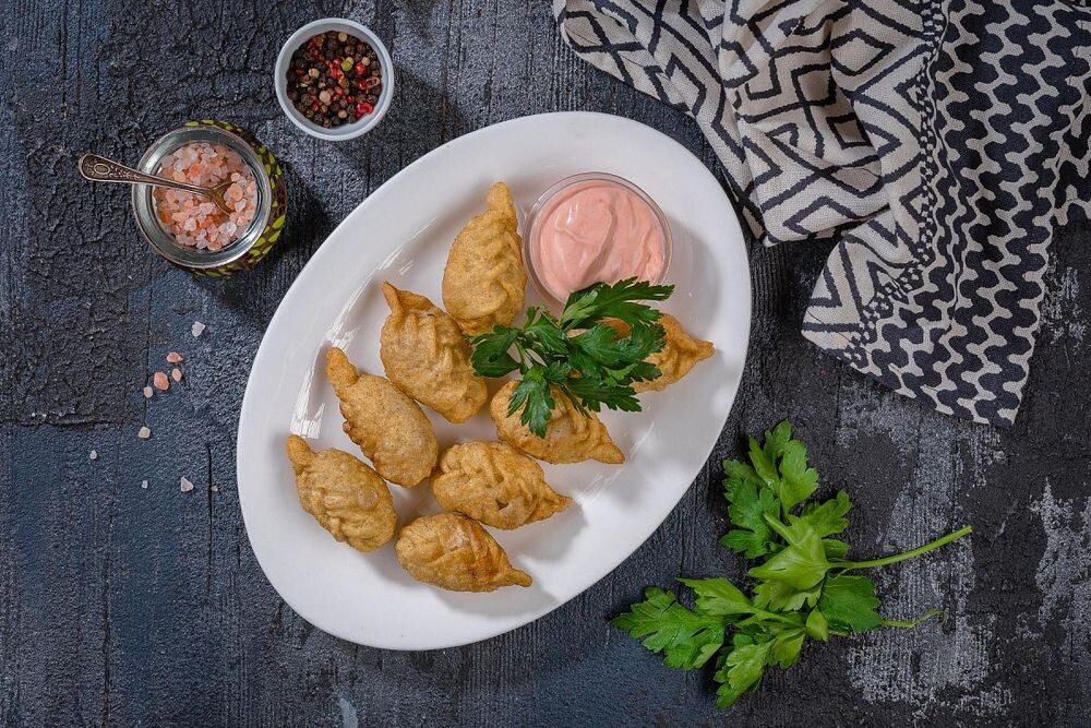 Азербайджанские жареные пельмени с соусом от шеф-повара