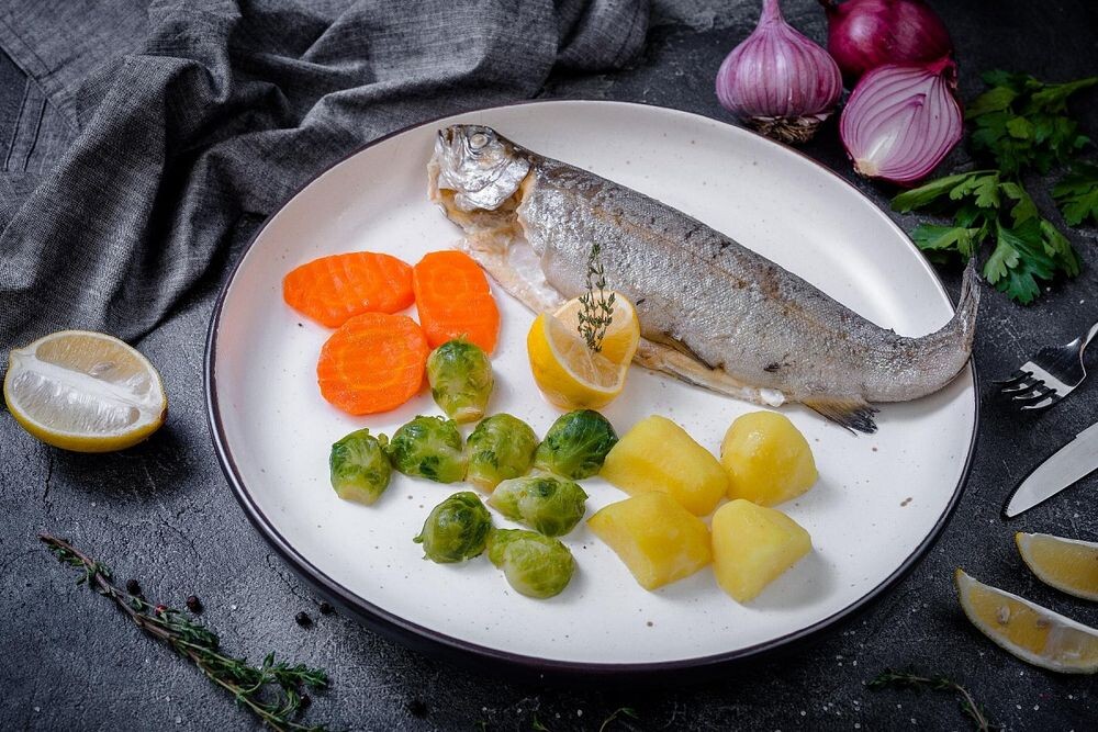 Сибас на пару с овощами