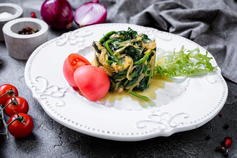 Шпинат, тушенный с луком